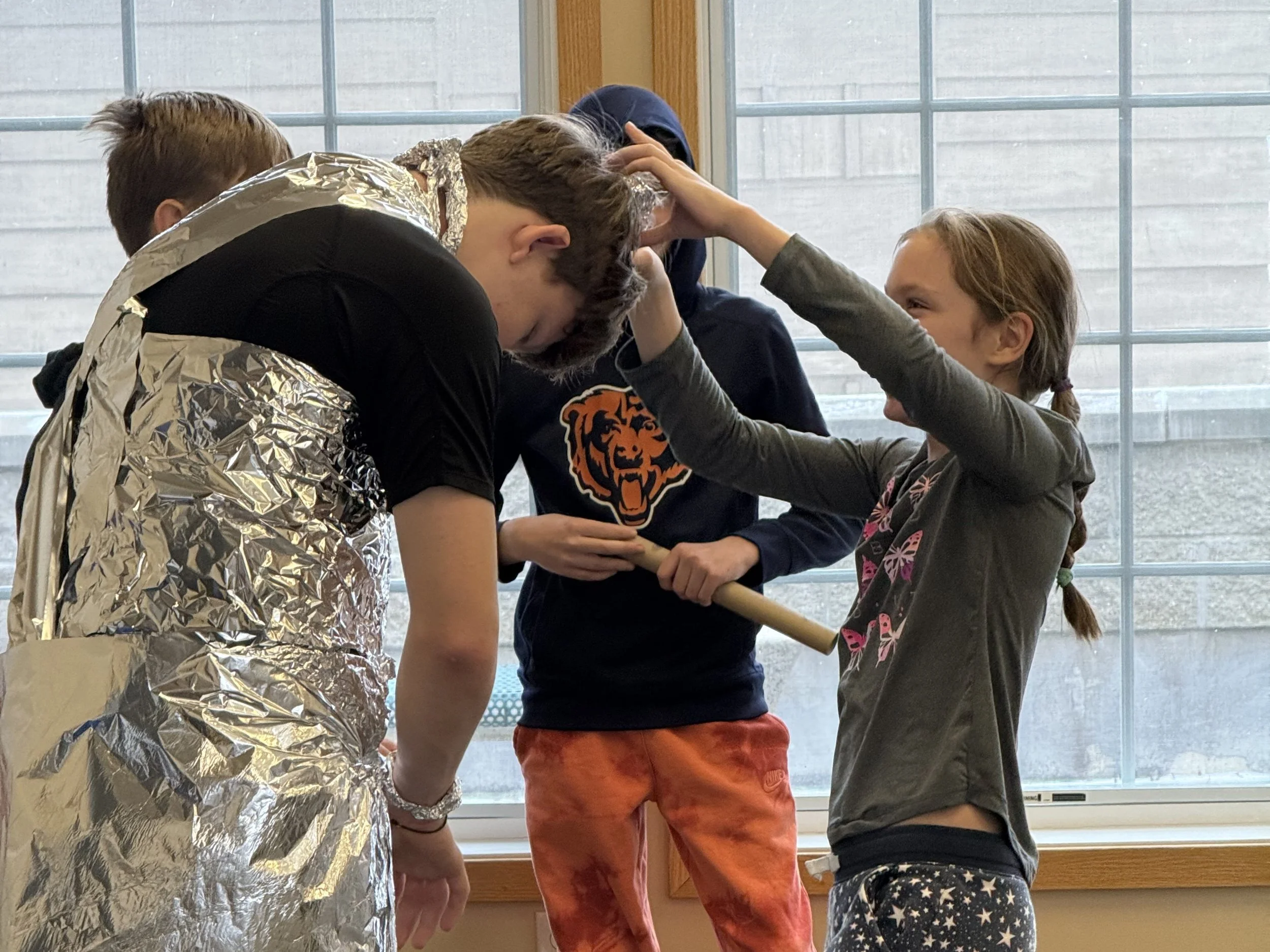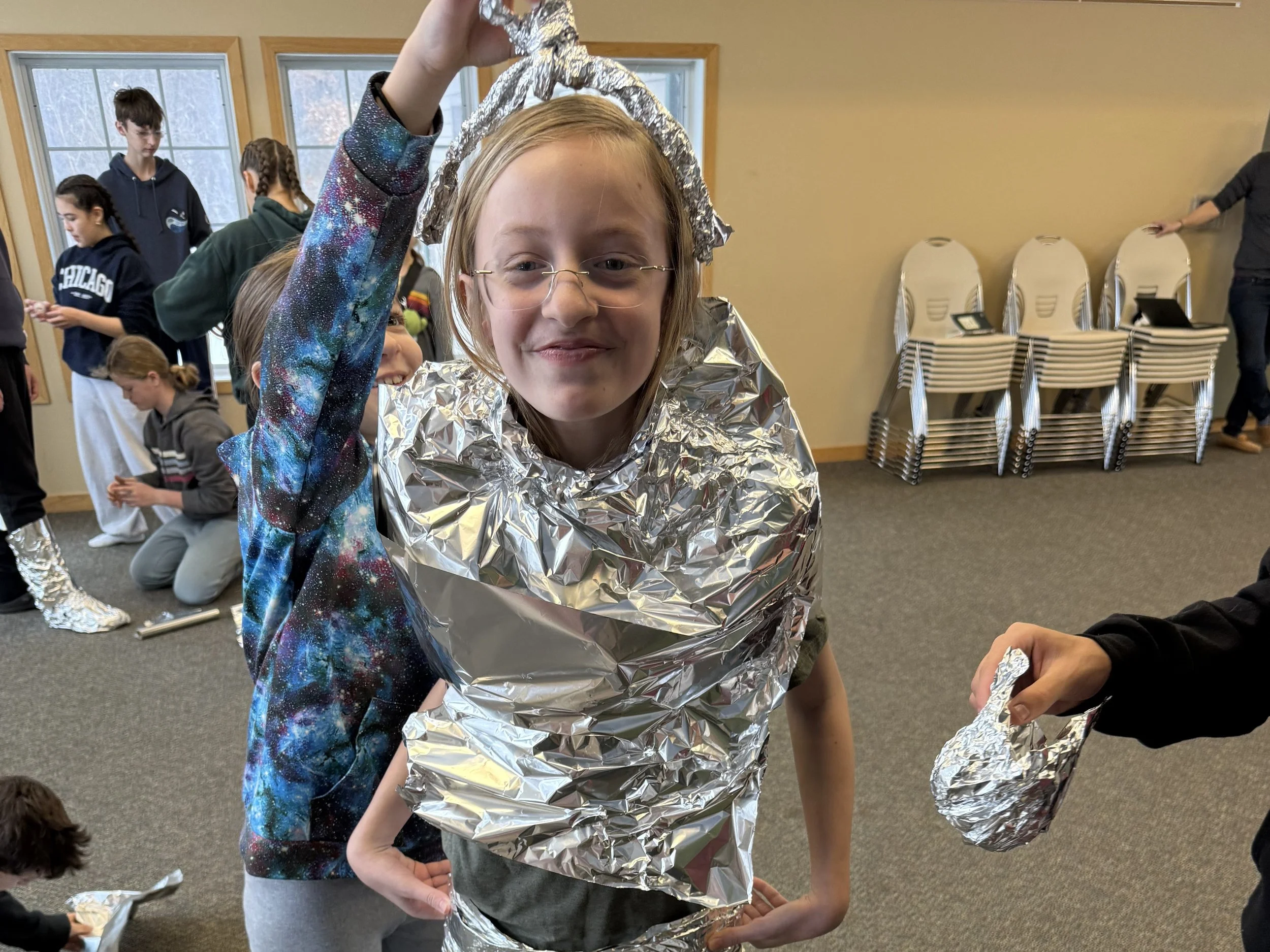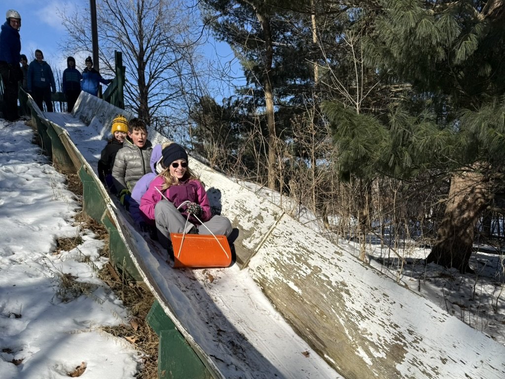 We loved tobogganing straight out onto the frozen lake. There were also team challenges that involved wrapping teens in tin foil, building human pyramids, and figuring out how to work together without collapsing.